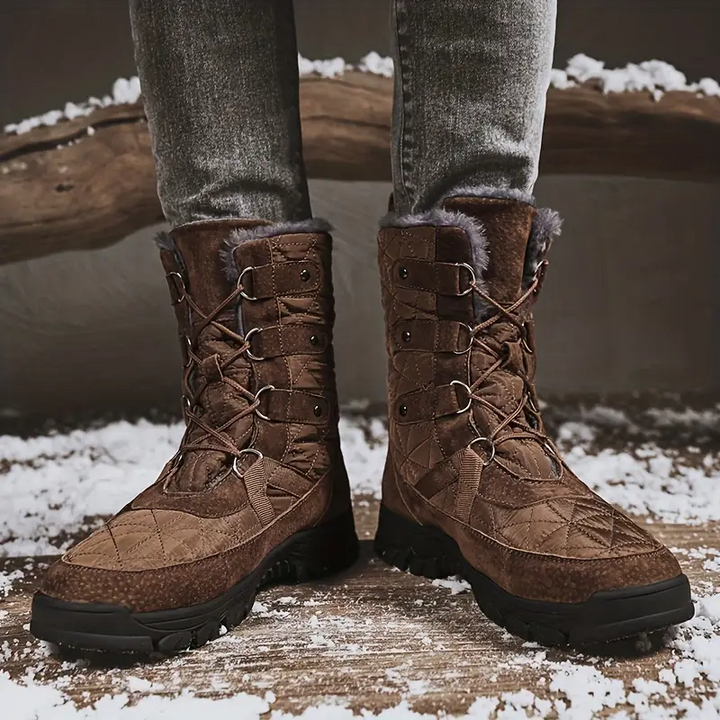 Our men's snow combat boots are designed to ensure every step they take is safe and comfortable. These boots feature high-quality genuine leather material that provides excellent waterproofing. The spacious toe design allows ample space for your feet, providing extra comfort.