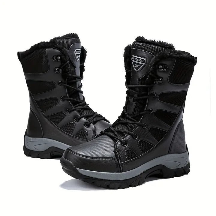 Men's Mid Calf Snow Boots, Winter Thermal Shoes, Windproof Hiking Boots With Fuzzy Lining