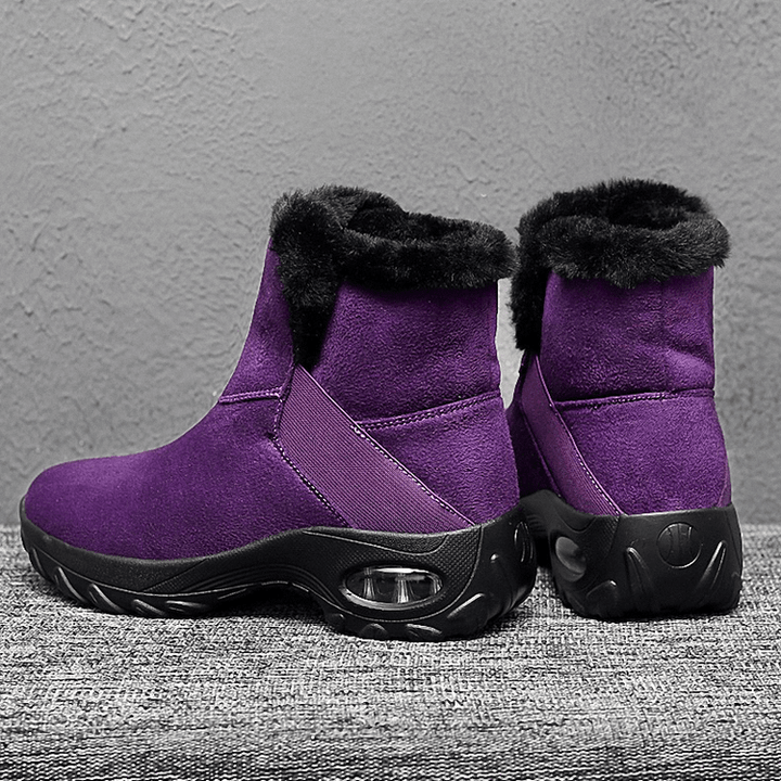 Suede fabric and soft fur lining keep your feet very warm, very comfortable. This all-purpose winter boot features an improved fit while retaining the reliable warmth and exceptional winter grip. Anatomically engineered with a windproof and waterproof high shoe design, wool fleece and non-slip rubber sole, this boot is ready to trek. Suitable for multiple occasions: indoor and outdoor activities in the cold winter, daily walks, parties, snowballs, women's ankle boots. Keep up your awesome energy on cold days.